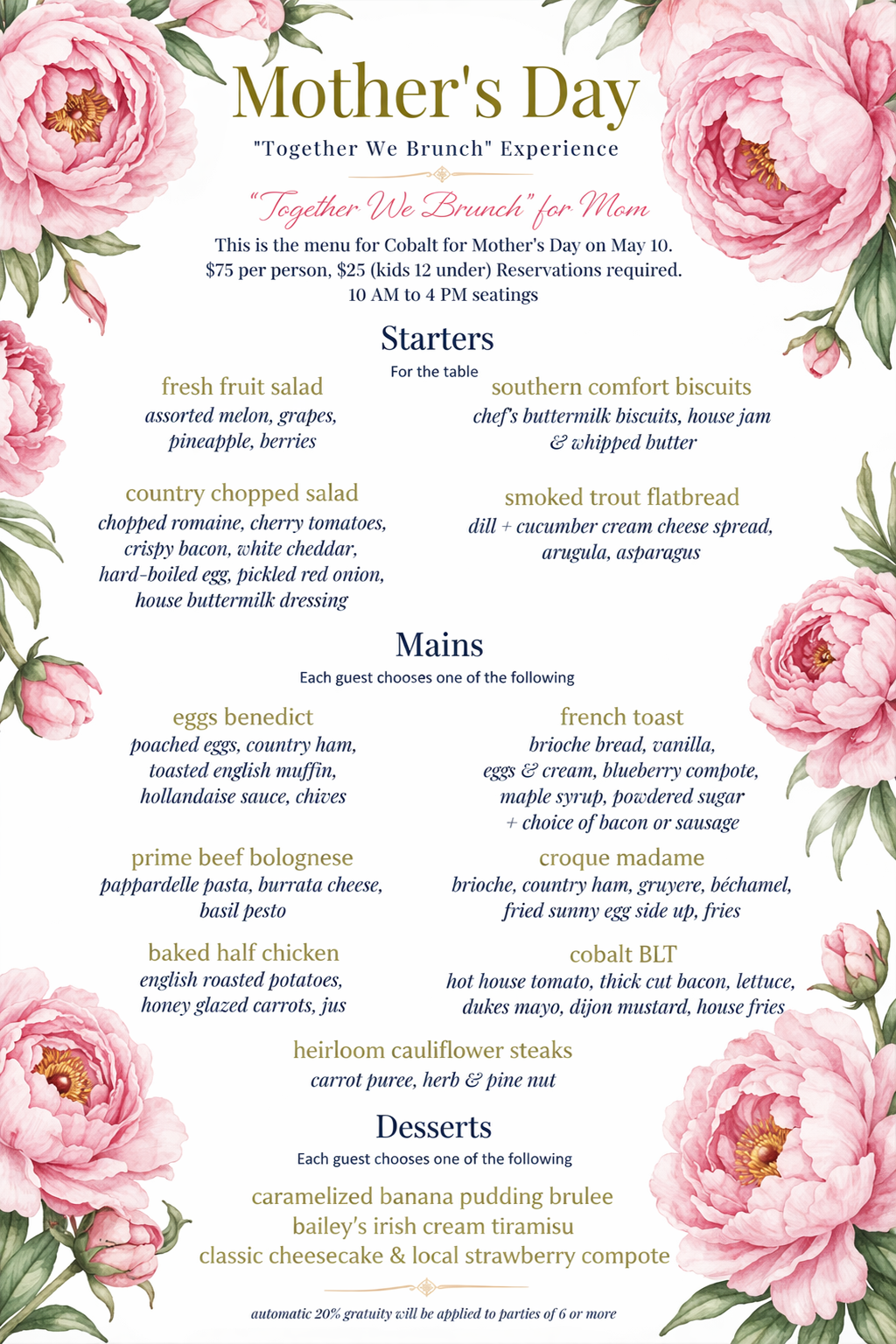 Join us for a “Together We Brunch” that features a wide array of food offerings for the table - something that everyone is bound to love - all in the spirit of giving thanks to and celebrating MOM!